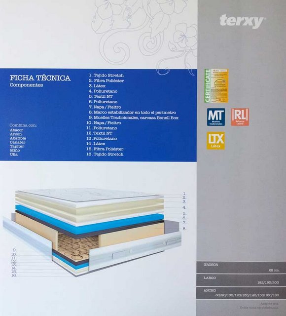 Colchón muelles tradicionales, carcasa Bonell Box, acolchada tapa a tapa con latéx .
