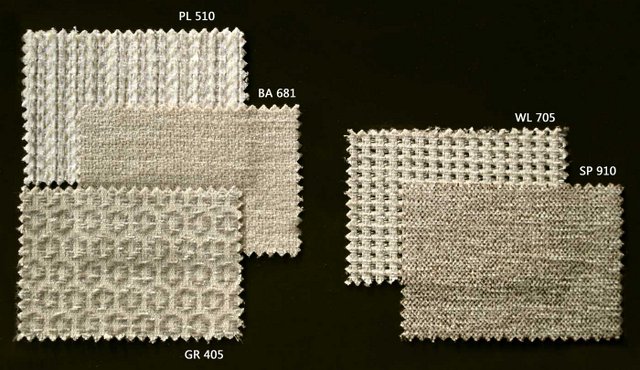 Elegir entre las telas de la galería inferior, buscar la tela en la pestaña color, fijarse en el grupo y en la pestaña opciones escoger tamaño y grupo.